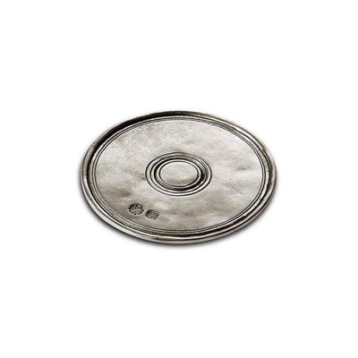These Cosi Tabellini solid pewter coasters have lovely hand drawn edging details. Each one is handcrafted of heavy Italian pewter, perfect for protecting your furniture while offering a classic design. It has a generous weight so it will stay put on your furniture rather than sticking to a glass. It is also stamped with symbols to show the pewter composition and the region of Italy where it was made. With green felt backing to protect your furniture.